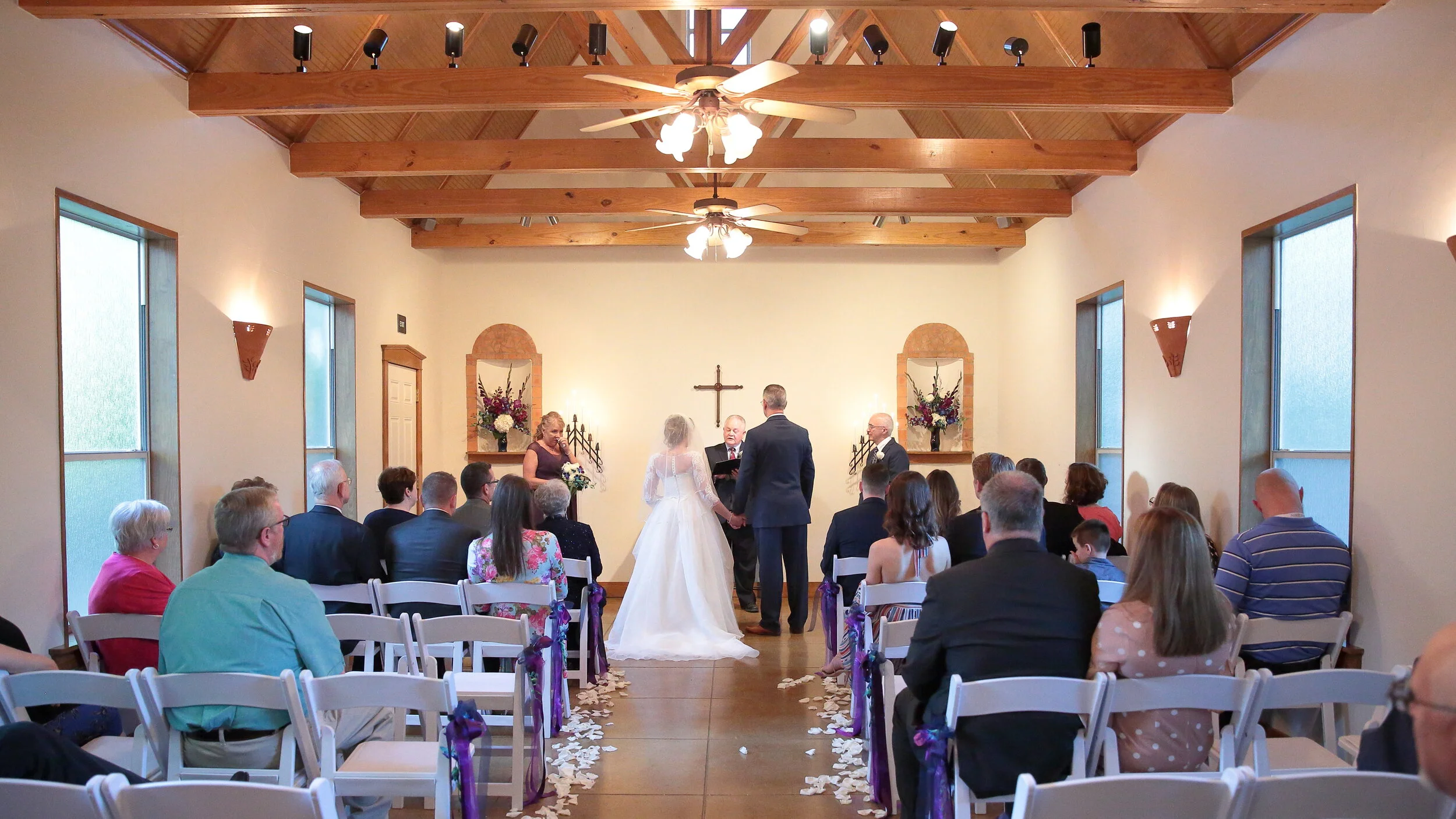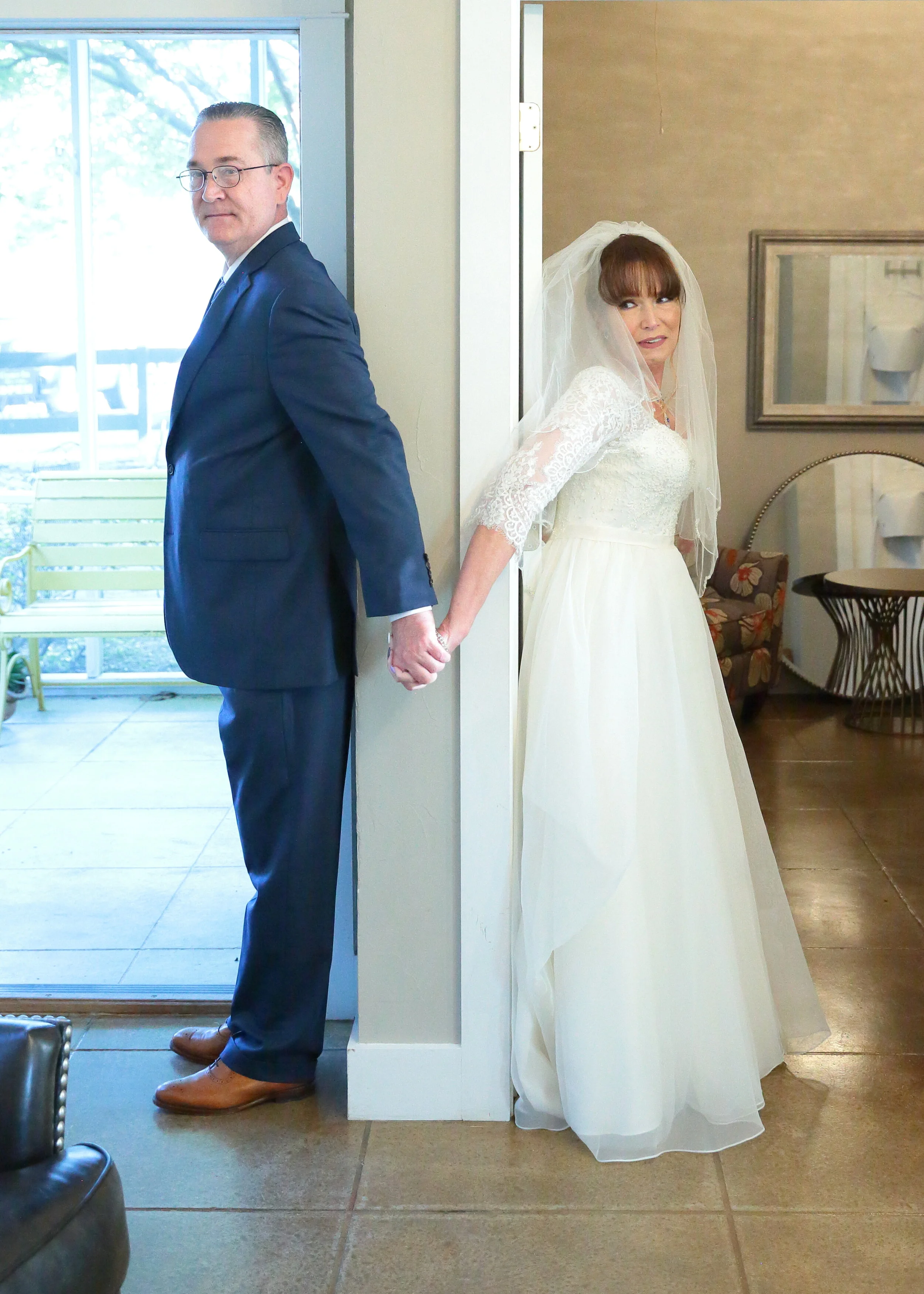 Victoria and Bill made their vows on National Pretzel Day in the presence of their closest family and friends inside a cute little chapel, known as The Little Wren, tucked away behind the Post Office in Rockwall, TX.